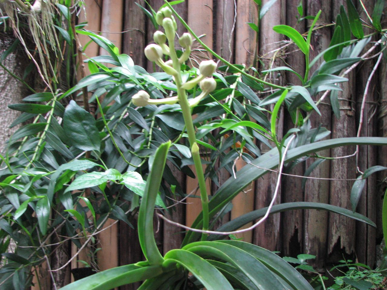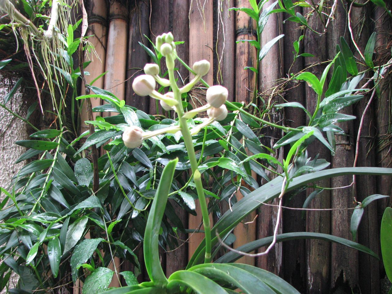 I bought the young plant (less than 4 inches tall) in 2005. I attached it to a driftwood and watched it grew to full size until it had its first spike four years later. So, for more than two weeks sometime in July to August 2009, I was watching the orchid develop from spike to bud to full bloom to the time its last petals fall. And I took snapshots of the waling-waling orchid from bud to full bloom.